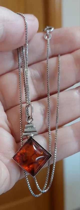 Collar de Plata con colgante Ámbar coñac. 23cm