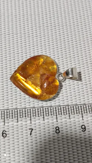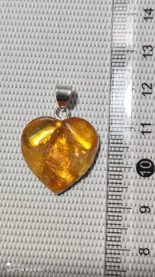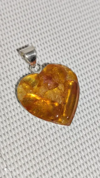 Precioso colgante con forma de corazón, elaborado con auténtico Ámbar Báltico y engastado en plata de ley 925. Pegado con soldadura plástica en frío, muy resistente, A40. - Diseño de corazón. - Material principal: Ámbar Báltico natural. - Engaste: Plata de ley 925.