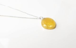 🐝Precioso collar hecho con ámbar Báltico natural de Polonia color amarillo yema y cadena larga. Materiales: ámbar Báltico y plata de primera ley (925) Diametro colgante: 1.7cm aprox. Largo cadena: 61cm