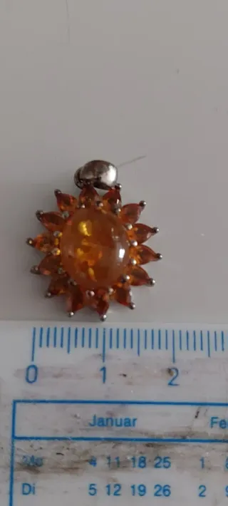 Bonito colgante con un detalle de plata y una piedra de ámbar. - Diseño con figura. - Piedra de ámbar de color naranja. - Colgante de plata.