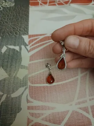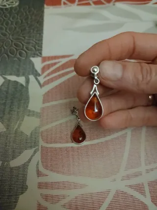 Pendientes y colgante de ámbar y plata