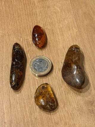 hermosos trozos de ámbar natural con tonos marrones y negros de fósiles Tiene muchos años. Están casi sin pulir para que se vean bien las grietas y fósiles naturales que tiene cada trozo Están tal cual en las fotos - Piezas únicas - Aspecto bruto Con agujero para hacer colgante