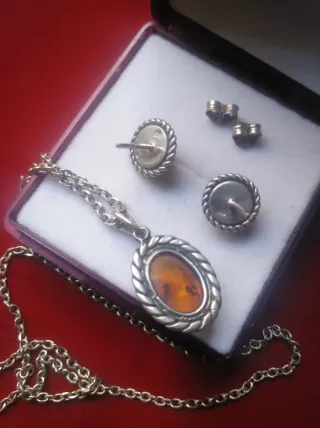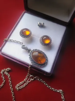 Colgante y pendientes ámbar plata antiguos