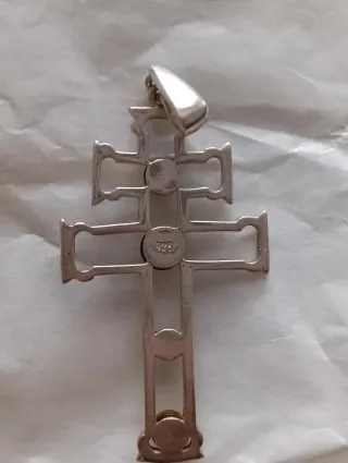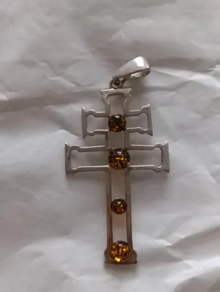 Elegante colgante con diseño de cruz adornado con piedras de ámbar. - Material: Plata - Piedras: Ámbar