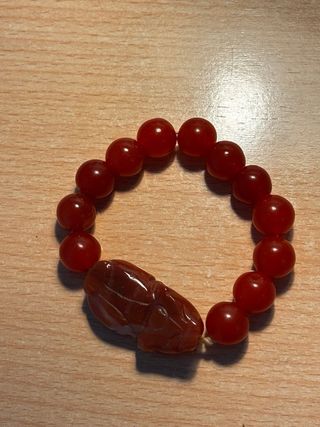 Bonita pulsera con cuentas de de cristal color ámbar y un colgante tallado. - Cuentas de cristal en tonos rojizos y marrones. - Figura de animal tallada en cristal .