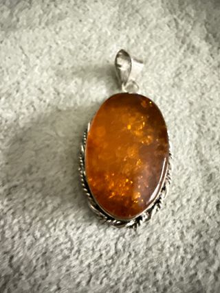 Es una pieza de las mas maravillosa que nosotros hemos visto Es un ambar de una calidad excelente Con sus contrastes y nombre del orfebre Lleva su cadena rígida. También de plata Su calidad como digo es de 10 Impresionante colgante de gran tamaño en ámbar natural color miel profundo, con espectaculares inclusiones orgánicas visibles. Montado en plata de ley 925 contrastada. Pieza grande y muy llamativa, ideal para quien busca una joya protagonista, con carácter y presencia. El ámbar tiene una luminosidad increíble cuando le da la luz, con zonas más intensas y naturales que garantizan su autenticidad.