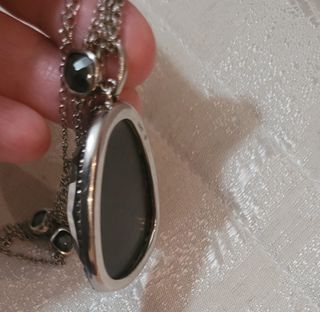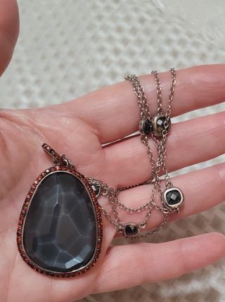 Original collar de plata con piedrecitas negras y piedra grande podría ser cristal con brillantitos de color ámbar falta una piedra casi inapreciable medidas en fotografías NO ES NEGOCIABLE ❌️