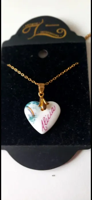 Precioso colgante con forma de corazón, ideal para regalar o darte un capricho. Presenta un diseño encantador con un arcoíris y el nombre 'Alicia' escrito. - Colgante con cadena. - .está sin estrenar el precio original fueron 10 $ ver segunda foto con precio