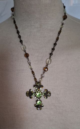 Es un colgante de una cruz de metalica, color plateado y granate. Nunca utilizado, siempre almacenado. Medidas 4 cm de largo la cruz. Según fotos.