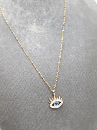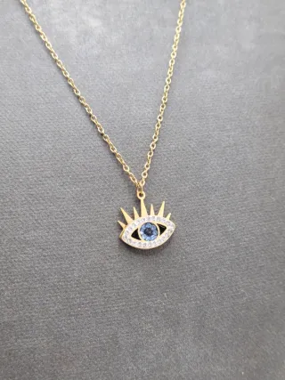 Elegante colgante con diseño de ojo, fabricado en acero quirúrgico y chapado en oro. Un accesorio llamativo y moderno. - Diseño de ojo con circonitas. - Cadena dorada. - Cierre de mosquetón.