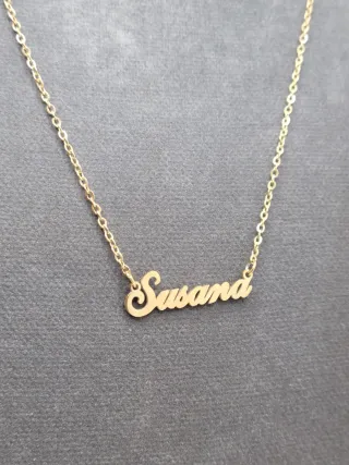 Elegante colgante con nombre Susana en acero quirúrgico. - Acabado chapado en oro. - Diseño delicado y moderno.