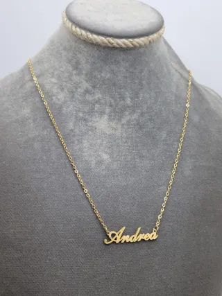 Elegante colgante con el nombre Andrea. - Fabricado en acero quirúrgico. - Acabado chapado en oro.