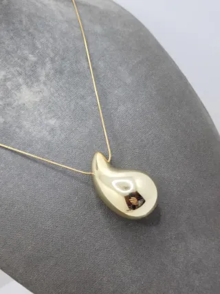 Elegante colgante de gota con cadena fina. - Material: Acero quirúrgico. - Acabado: Chapado en oro.