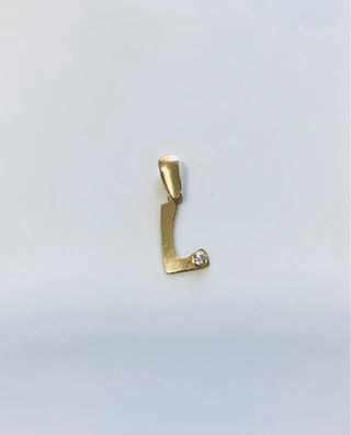 Colgante de oro amarillo de 18 kilates con diseño de letra L y circonita engastada. Pieza fina y elegante, ideal para uso diario o como regalo. En muy buen estado, tal y como se aprecia en las fotos. Medida: 1,4 cm Peso del colgante: 0,20 gramos Incluye cierre reasa de oro (0,5 g).