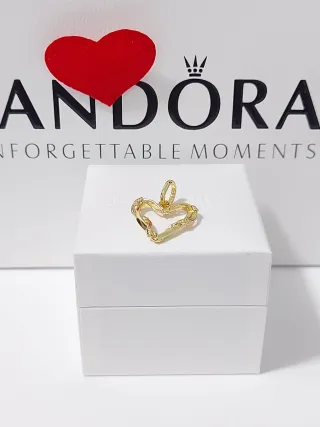 Precioso colgante de Pandora con forma de corazón, ideal para añadir a tu pulsera. - Diseño abierto de corazón. - Detalles en circonitas brillantes. - Acabado en oro.