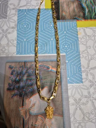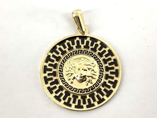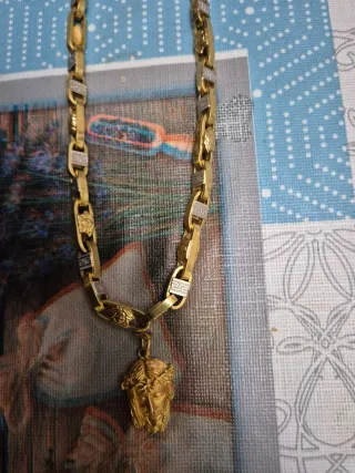 Conjunto de cadena y colgante de oro de 18 quilates. Cadena versace de oro de 18k 60cm de largo Cadena muy hermosa - Peso total: 52 gramos. - Diseño de cadena con eslabones. - Colgante con figura de rostro.