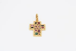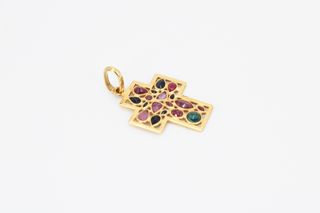 Colgante Cruz Oro 18k con Piedras Multicolor