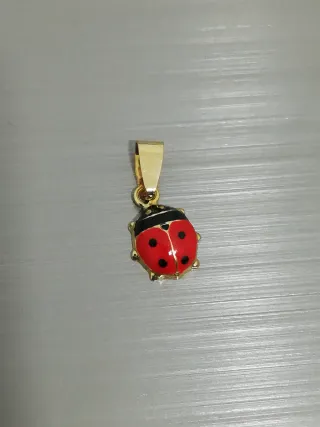 Colgante de oro de 18 quilates con diseño de mariquita. - Detalle en esmalte rojo y negro. - Cierre para cadena.