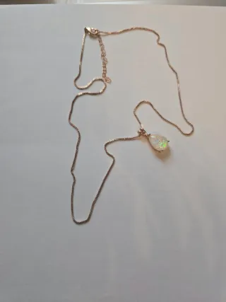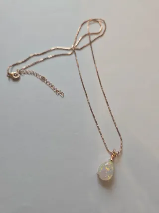 Elegante colgante con cadena fina plata rodiada en oro rosa,un detalle de piedra nacarada en forma de lágrima. - Cadena plata rodiada de oro rosa. - Colgante con piedra nacarada. - Cierre ajustable.