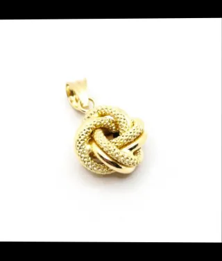 Elegante colgante con diseño de nudo. - Acabado en oro brillante. - Diseño intrincado y detallado.