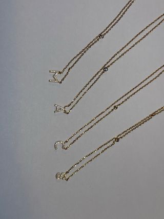 Bisutería color oro Perfecto estado Colgante inicial letra O ( 4€) Inicial letra C dorada , con circonita, broche pin Obsequio aguja plateada C Inicial letra M con circonita, broche pin A 3€ cada una Gargantilla chapada en oro con colgante letra M y con pulsera rígida marca Rm (12 € ) Gargantilla nombre María con corazones de colores , es lo único que ha tenido uso, 3€ Aro dorado suelto, bisutería , fuerte 3€