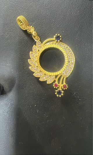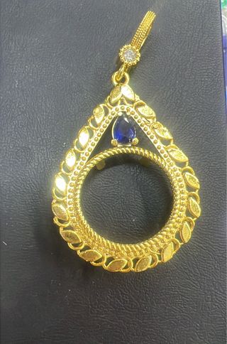Elegante colgante para mujer con un diseño llamativo. Precio por unidad - Baño de oro 18 kilates - Detalles en granate rubi y safiro tratados