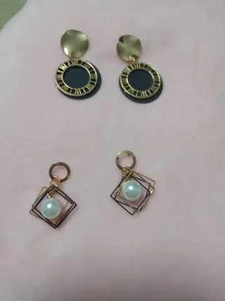 Elegantes pendientes para mujer con un diseño moderno. - Combinación de colores oro y negro. - Diseño circular con números romanos. - Colgante con perla y estructura geométrica.