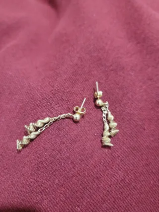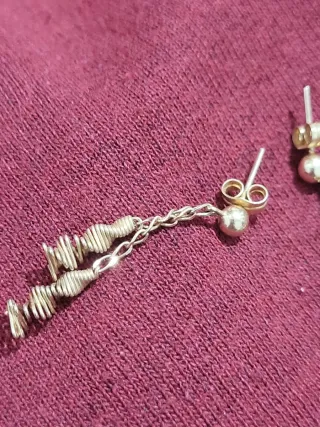 Elegantes pendientes para mujer. - Diseño colgante con cadena. - Detalle de cuentas en espiral.