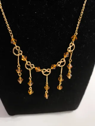 Elegante gargantilla de estilo vintage con baño de oro. Presenta un diseño delicado con detalles colgantes. - Baño de oro. - Cristales de color ámbar. - Diseño colgante.