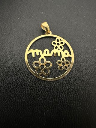 Precioso colgante de oro de 18 quilates con la palabra mama y dos flores. - Diseño circular. - Acabado brillante. - medidas en fotos