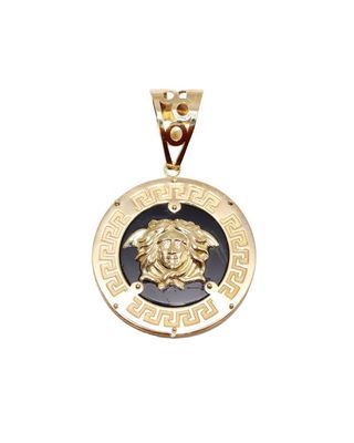 COLGANTE REDONDO MEDUSA ONIX Y GRECA 18K