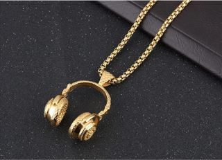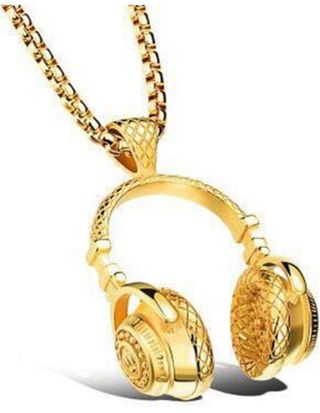 Producto nuevo . Collar a forma de auriculares cascos Dj , color oro , acero inoxidable . unisex colores disponibles : oro y plata collar colgante