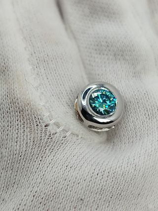 Punto de luz. Colgante ORO blanco 18 KT y moissanita certificada GRA 0,5 CT. (diamante de laboratorio) Color D. Pureza VVS1. Pasa los test de diamante. Diámetro 0,9 cm. Peso 1,35 gr. No baño. Precio no negociable.