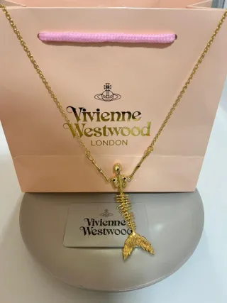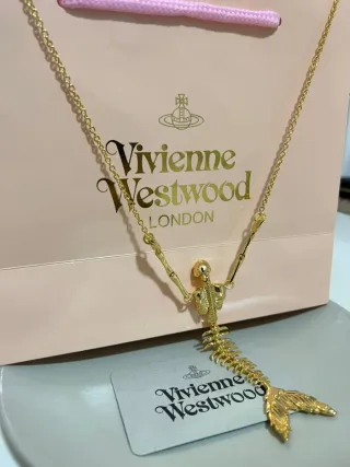 Elegante collar de la marca Vivienne Westwood con un diseño único. - Colgante con forma de esqueleto de pez. - Acabado en tono dorado.