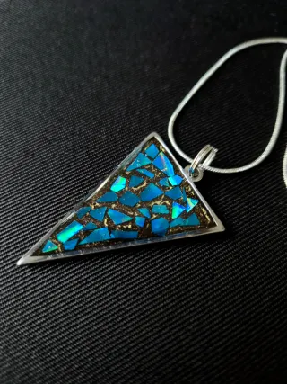Colgante con diseño triangular y detalles en resina. La cadena es de plata 925.