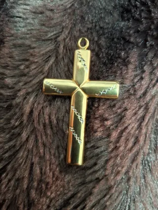 Se vende cruz de oro de 18 quilates muy bonita con detalles en oro blanco no tiene piedras mide 5cm y pesa 3,30gramos.Gracias - Material: Oro 18k - Acabado pulido - Diseño con grabados lineales oro blanco