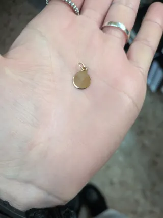 Pequeña chapa redonda de oro de 18 quilates. Se puede grabar . - Diámetro aproximado de 1 cm. - Cierre con asa para cadena. Nueva de joyería, se envía en su caja y con factura. Peso y medidas en fotos. Joyería padilla