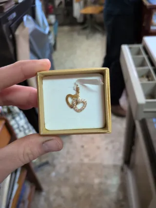 Precioso colgante con diseño de doble corazón realizado en oro de 18 kilates y circonitas - Fabricado en oro de 18 quilates. - Adornado con pequeñas circonitas brillantes. Peso y medidas en fotos. Nuevo de joyería, se envía en su caja y con factura. Joyería padilla