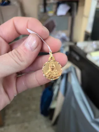 Colgante de oro con un peso de 7.11 gramos. Oro de 18k, diferente por los dos lados - Diseño circular. - Imagenes religiosas grabadas. - Borde texturizado.