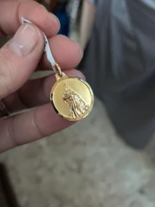 Medalla redonda con la imagen de Santiago Apóstol. Realizada en oro de 18 kilates Peso y medidas en fotos. Nueva de joyería, se envía en su caja y con factura . Joyería padilla - Diseño en relieve. - Cierre con asa para cadena.