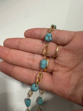 Elegante collar de oro de 18 quilates con piedras de turquesa. - Diseño con eslabones dorados. - Piedras de turquesa irregulares.