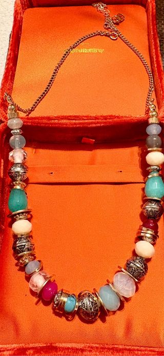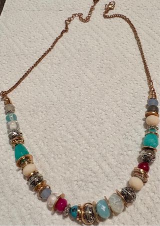 Collar con colgante de piedras de colores y detalles dorados. - Diseño con variedad de cuentas. - Cadena con cierre de mosquetón.