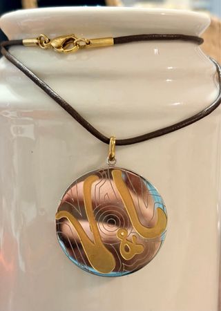 Elegante colgante de la marca Vitorio y Luchino. - Diseño circular con detalles en oro y plata. - Acabado pulido y texturizado.