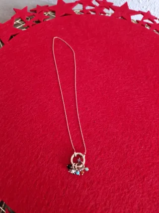 Elegante collar de la marca Aristocrazy con un delicado diseño de libélula. Gargantilla cadena con colgante de plata 925 con baño de oro rosa . 3 posiciones de la cadena. Muy bonito . Poco usado - Acabado en oro rosa. - Detalle de libélula. - Incluye caja original.