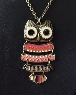 Medidas: - búho: 6 x 3,5 cm - cadena: 82 cm Llamativo colgante collar de búho articulado de estilo bohochic vintage, caracterizado por su diseño segmentado que permite el movimiento de las "plumas". Fabricada en metal con acabado de oro antiguo o bronce y decorada con detalles de esmalte multicolor. La cadena tiene algunas señales del uso y del paso tiempo (ver fotos). Se hace descuento por la compra de varios artículos del catálogo #CO35 #accesorio #articulado #bisuteria #bisuteríaesmaltada #bisuteriavintage #búho #buhovintage #collar #collarbuho #colgante #colgantebuho #colganteesmaltado #complementos #complementosdemoda #dije