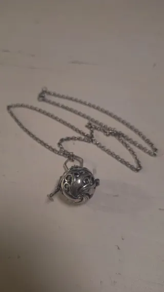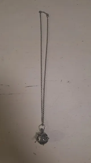 Colgante con cadena de bolitas de plata de ley. Esta rota, de ahi su precio. - Diseño detallado en el colgante. - Cierre de mosquetón. No envio. Entrego en mano en Humanes de Madrid.