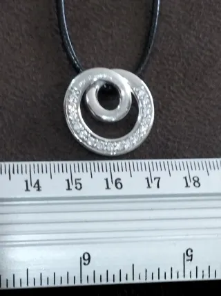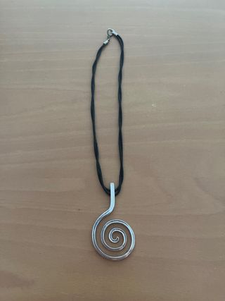 Elegante colgante con diseño de espiral. El cordón es de color negro y el colgante es plateado. - Diseño moderno en forma de espiral. - Cordón trenzado de color negro. - Colgante de metal plateado.