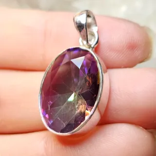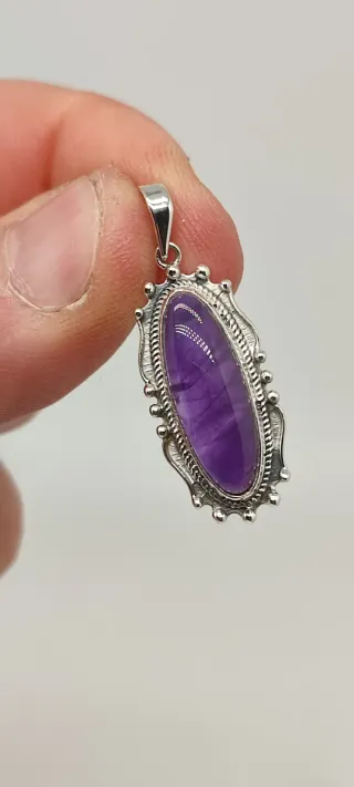Precioso colgante de plata de ley 925 y amatista. Medida 3,3×1,3 cm con el engarce. Se entrega con bolsita para regalo.