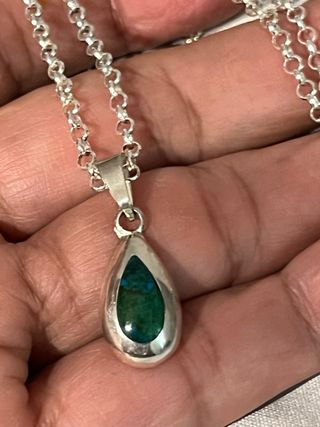 Colgante con Lágrima de Malaquita incrustada en plata. Nueva a estrenar. #colgante #colgantes #malaquita #plata #piedrasnaturales #minerales #joyeriaartesanal #joyeria #accesorios #regalo #estilonatural #joyas #jewels
