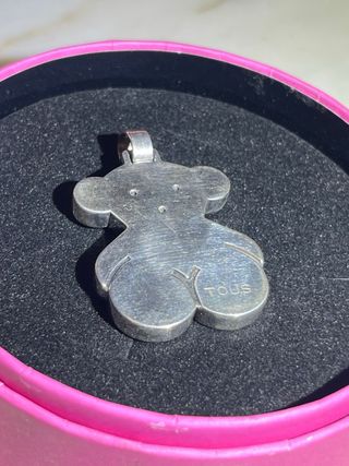 Este colgante clásico de Tous de plata tiene el diseño del oso, en su tamaño más grande. Es una pieza icónica de la marca, en la foto he puesto otro dijo de tous que vendo para que se vea la comparación de tamaños. En mi perfil tengo muchísimas cosas tous más si quieres echar un vistazito para ahora que se acercan las navidades